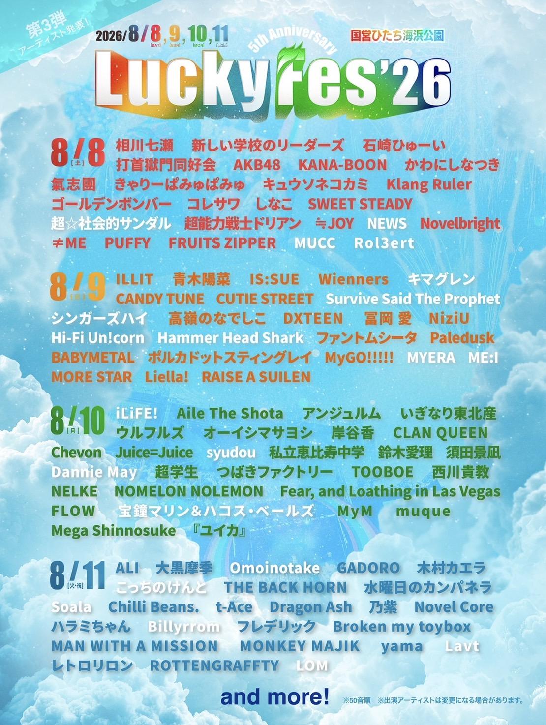 【🌈8/11(火・祝) 《LuckyFes'26》出演決定🌈】